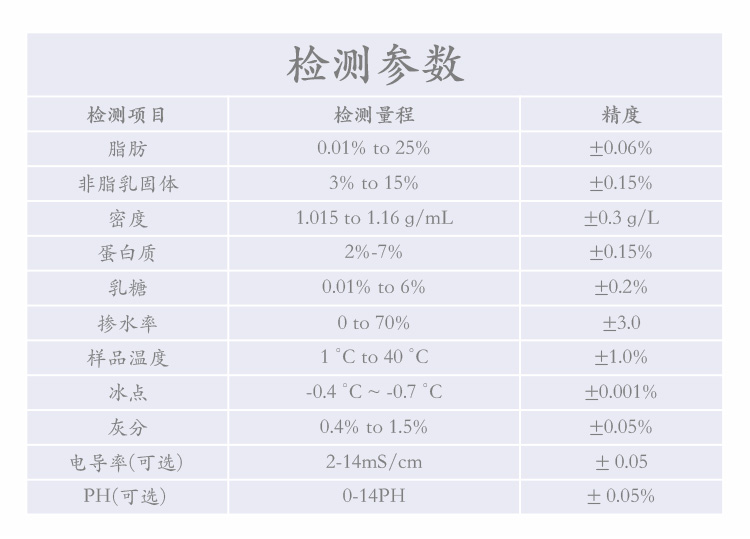 3、快速、準(zhǔn)確測量牛奶成分。